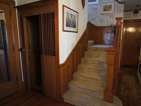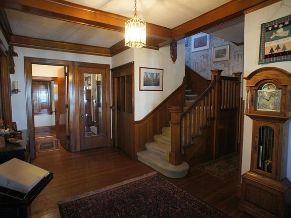 This is your chance to own and live in one of Webster City's most historic and elegant homes. Grand entry with grooved glass, arched wood doors and heavy oak woodwork with inlaid wood doors, elevator located off foyer that goes to basement or 2nd floor. LR has wood burning fireplace with pocket doors to a sun room. Another set of pocket doors lead to the Dining room which features a built in hutch with stained glass doors; and stained glass windows. There is a butlers pantry leading to the kitchen which has a separate pantry and back entrance. Opposite the living room is a den with fireplace and a pocket door. There is also a powder room and office on the main level. On the 2nd floor you find 4 bed rooms 2 sleeping porches, 2 baths and a library overlooking the street. Going up to the 3rd floor there is a large hobby or game room with plenty of storage spaces. There is a detached 2 car garage, and a separate in-law cottage which features LR, BR, kitchen, laundry and bath .