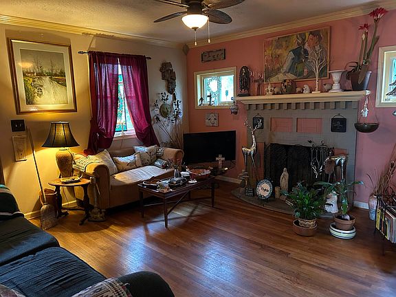 Charming hillside home with distant mountain views! This unique, cozy cottage features a stone porch, interior column and archway, fireplace, and glass block shower window. Spacious backyard and gated porch are a dream come true for your pet. Walkout basement provides plenty of room for storage. All appliances including dishwasher and clothes washer & dryer convey. Being sold "as-is". Priced under the tax assessment.