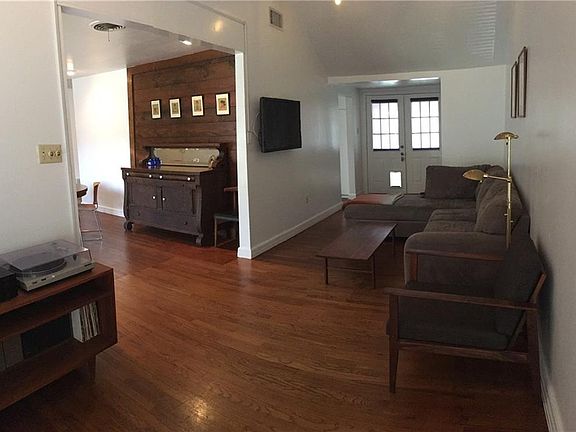 A beautiful and unique retreat just waiting for a new family! This bright and airy home has ample space including multiple living rooms featuring hardwood floors, a wonderful solarium perfect for reading and relaxing, a wet bar, a large kitchen with plenty of cabinet space and a skylight, and a breakfast area. There are 2 full bedrooms and 2 full bathrooms. The master bedroom is complete with a stone fireplace and a large sitting area that is perfect for unwinding at the end of a long day or could double as a nursery area. A huge workshop is located in the large back yard and is something you do not want to miss! A very welcoming home on a quiet street. This one will not last!