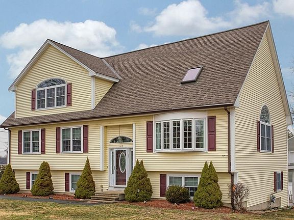 Burlington line! Beautiful, Sundrenched and Skylit! Split Cape with Contemporary flair. Many custom upgrades. Skylit cathedral ceilings in the Living room, Dining room, and Kitchen let the sunshine in. Cathedrals add volume to the open concept with gleaming hardwood floors. Your retreat is a Master bedroom suite on the second floor with full bath and plenty of closets. Finished Family room, 3rd Bath/Laundry on lower level leads out to 2 car garage. Central A/C and Central Vac - WOW!!!