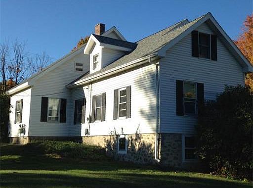 Lunenburg colonial with room for everyone. 4-5 bedrooms, 2.5 baths, First floor features - entry from new deck just built, hall closet and half bath, open kitchen with oak cabinets and large breakfast area which opens to the living room, wonderful first floor laundry room with generous built in cabinets, washer, dryer and sink. Two more rooms that could be first floor bedrooms, den or office space. Second floor includes a master bedroom with private vanity with sink, double closet with adjacent sitting room, full bath with skylight and shower and two more bedrooms. There is also an abundance of storage. Detached garage with separate garage for riding lawn mower, etc. and stairs to a second floor for storage, etc. Grounds include 50 rhubarb plants, lilac bushes, red maple, bittersweet, quince and Concord grapes on over 1.6 acres with a small stream on the border.Recent boiler, windows, roof and septic system.