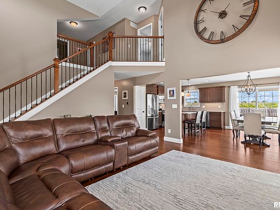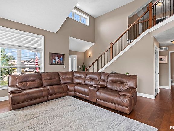 Located in sought after Glendale Estates Subdivision within the Chatham Glenwood School District, this SPOTLESS 5 bedroom, 3.5 bath stunner offers the perfect blend of elegance and comfort! The 1.5 story design features soaring two-story ceilings in the living room and a main-level primary suite. Upstairs, you'll find three generously sized bedrooms, a full bath and a cozy sitting areal Natural light pours through abundant windows, highlighting the open and airy layout. The beautifully finished basement includes a spacious family room, recreation area, bedroom and full bath. An oversized 3-car garage provides ample storage, while the huge cul de sac lot boasts a fenced backyard, covered patio and peaceful field views! Garage measures 21.6x22.2 and 12x27! Credit to be given to buyer at closing for full roof replacement by Mike Coady with Coady Roofing. Bid to be provided! Walk-in closets. Granite countertops. Finished basement. Covered patio.