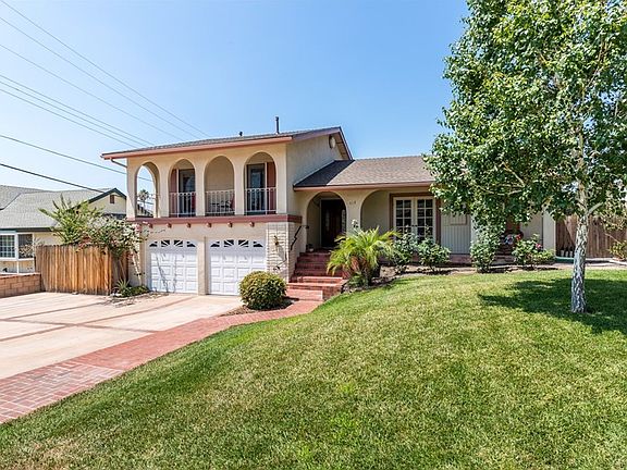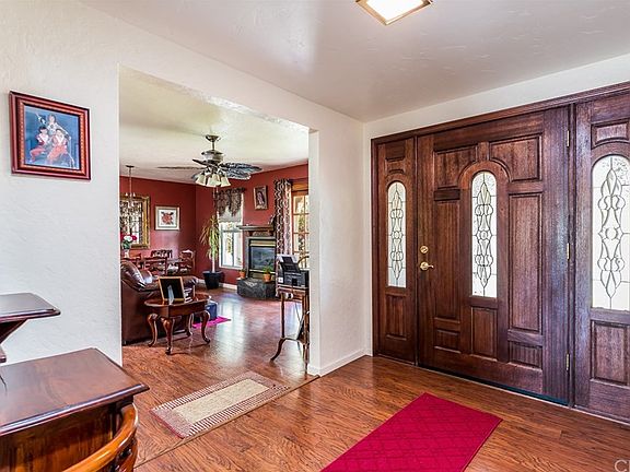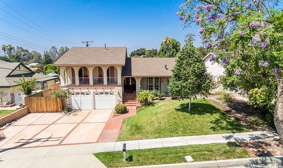 METICULOUSLY MAINTAINED POOL HOME IN A QUIET FOOTHILL NEIGHBORHOOD. Manicured front landscaping, a concrete driveway w/brick ribbon & a front covered patio. The front door opens to an entryway w/laminate wood floors leading to the living room & family room. The living room offers laminate wood floors, french doors that open to the front patio, a fireplace & an adjacent formal dining room w/chandelier. The family room features a floor to ceiling river rock fireplace, slider to the back deck & is open to the kitchen area. The remodeled kitchen offers classic white cabinetry, granite countertops & backsplash, recessed lighting, an open eating area w/vaulted & exposed beam ceilings, private deck access, a spacious walk-in pantry & overlooks the backyard. On the lower level a master bedroom offers laminate wood floors, a french door to the backyard w/private patio, a ceiling fan & an ensuite bathroom. The master bath offers brick laid pattern floors, a vanity w/granite countertops & a tiled shower. Upstairs are three bedrooms, two offer front balcony access & one is oversized w/backyard views. The upstairs hall bath offers dual sinks & a shower/tub w/glass sliding doors. Spacious two car garage w/a storage access door. The backyard features a pool & spa w/5' removable safety fence, grass area, trees, planters, full sprinklers w/drips, a view deck w/mountain views & RV parking. Additional features; full copper plumbing, 200a panel, newer paint & multi-speed pool pump.