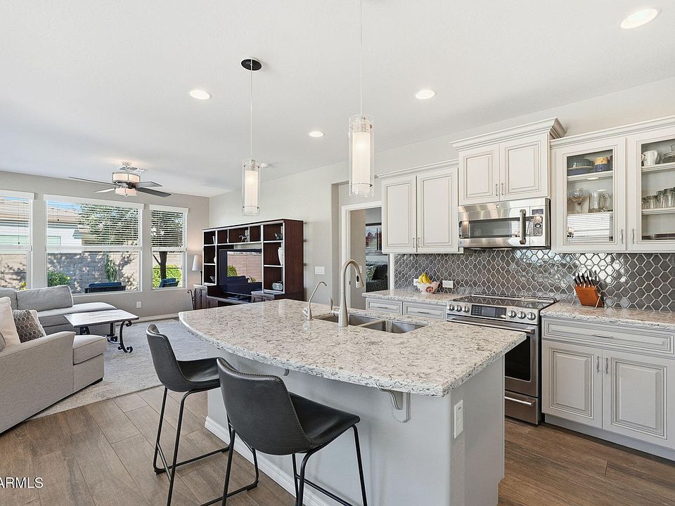 Bright open floorplanSoft water systemReverse osmosis systemCustom backsplashRich cabinetryStunning quartz countertopsUpgraded tile plank flooring