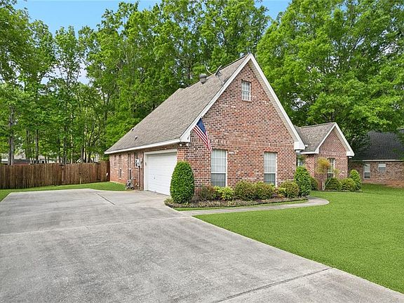 Charming, one story all brick home on a spacious lot ready for new owners! You will love the location with nearby Mandeville schools, restaurants and shopping with easy access to Lake Pontchartrain Causeway! Large driveway entrance leads to the convenient, attached side load garage. Great room enjoys a vaulted ceiling creating a wonderful open and spacious feeling. Majority of ceiling height is 9 feet with 20 foot ceiling in the great room! You will love the roomy 3 bedrooms and 2 baths and the great storage throughout. Primary bedroom has wood flooring and a delightful step ceiling. Wonderful spanning windows that showoff a bountiful backyard view and also bring lots of natural light into the greatroom! The great room fireplace is the focal point and certainly a great gathering spot on cooler nights! Kitchen has granite countertops, shiny stainless steel appliances and a spacious pantry. Easy entertainment flow from kitchen to the great room and extends out to the covererd patio (18 ft by 8 ft) for summertime barbeques or crawfish boils! The wooden deck is 18 ft by 12 ft as well! Easily accomodates a crowd! Come live that relaxed life and enjoy all that Mandeville has to offer!
