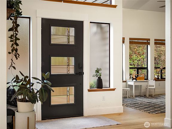 Fabulous acreage in a highly desired Fox Island location! Enjoy stunning Sound views from this beautifully designed home featuring real hardwood floors, soaring two-story ceilings, and granite finishes. The main-floor primary suite offers an en suite bath and walk-in closet, while a second primary suite upstairs includes two walk-in closets, an en suite. You will have your own catwalk overlooking the great room. Entertain on the new deck or patio with an outdoor fireplace plumbed for an outdoor kitchen, or relax in the hot tub surrounded by over an acre of serenity. Additional highlights include a spacious basement/rec room, oversized 2.5-car garage, large laundry room, gas cooking, and wood stove. RV parking and storage shed.