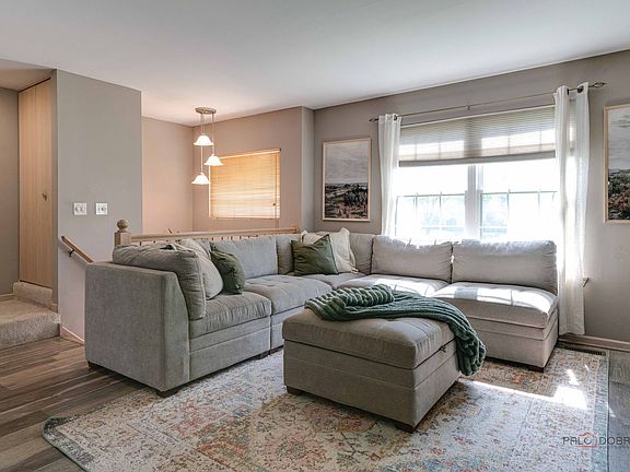 Enjoy comfort, convenience, and community in this bright and spacious end-unit townhome located in Grayslake's sought-after College Trail. This 2-bed, 2.5-bath home delivers smart design and easy living. Vaulted ceilings and large windows fill the main level with natural light. The open-concept living and dining area features wood laminate floors and a cozy fireplace. The kitchen offers a breakfast bar, island, and pantry closet-ideal for daily function and entertaining. Upstairs, two generously sized bedrooms each boast walk-in closets and easy access to a full bath. The second-floor laundry adds everyday practicality. The finished basement with a family room expands your living space even more. Step outside to a private balcony or take advantage of the nearby parks, trails, and playgrounds. Located minutes from downtown Grayslake, Metra stations, schools, dining, and shopping, plus easy access to I-94 and Route 120. Quiet, connected, and close to everything-this home fits your lifestyle.
