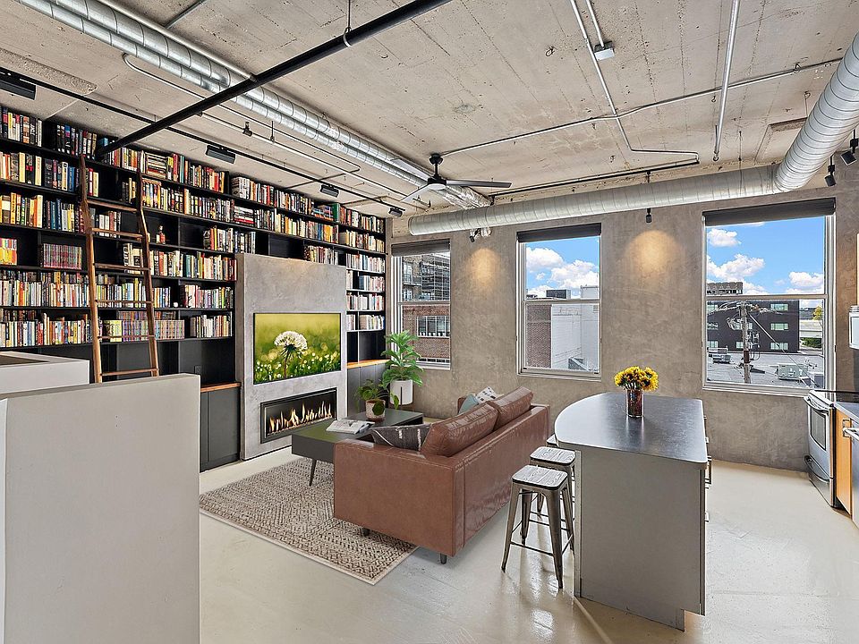 Welcome to #305 at 918 Lofts — living history with urban style and convenience. Part of the Historic North Loop, this beautiful 1922 brick building was originally used as the Lavoris Mouthwash Factory, converted into modern loft-style condos in 2004. You’ll love the open concept feel with high ceilings, exposed ductwork, and large south-facing windows streaming an abundance of natural light. Concrete construction also makes for quieter living.