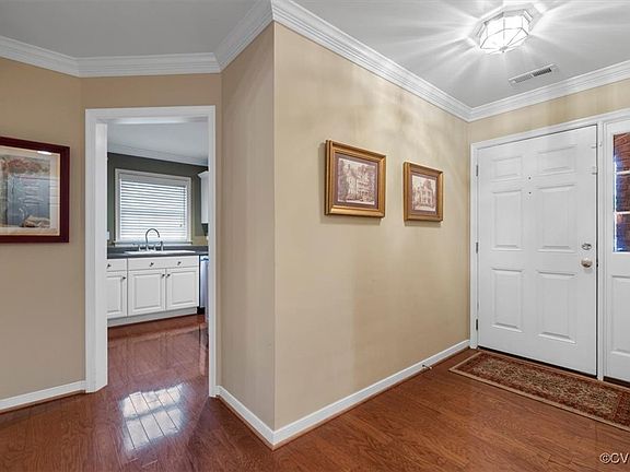 A truly rare opportunity to find this maintenance-free patio home in Clayborne Village! This cul-de-sac home has been impeccably maintained by its original owners. The large living area features a vaulted ceiling, generous dining area and spacious seating area near gas fireplace which opens to the light-filled sunroom and access to the rear patio and yard. The first floor owner's suite includes 2 walk-in closets, large bath with double vanity, low-entry tub and walk-in shower. Also on the first floor is a second bedroom with adjacent full bath, in addition to a den/office with stairs leading to the second floor. Upstairs is third bedroom with full bath and walk-in closet and walk-in access to two large attics. Home features include SimpliSafe security system with water detectors; Tankless recirculating water heater 2024; Stainless steel kitchen appliances 2018. All appliances, washer and dryer (2018) convey. Neighborhood amenities galore, including pool, playground and pickleball. All very convenient to the local library, parks and the best of Midlothian's restaurants and shopping!