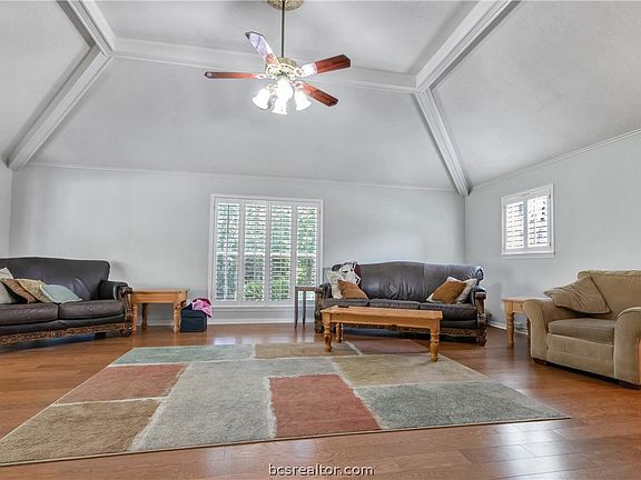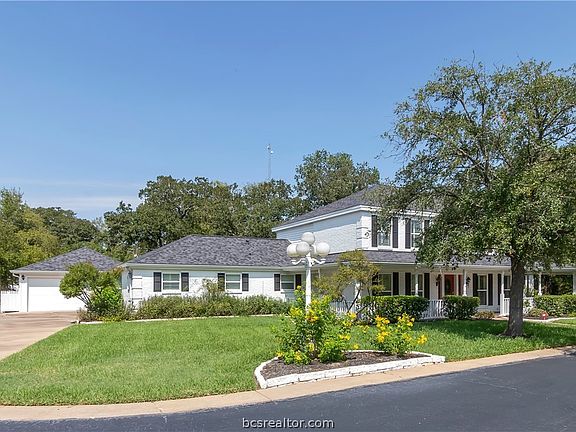 Do you love being outside? Love entertaining family and friends? Do you want privacy and land in the heart of BCS, close to A&M? Here it is and more, all in sought-after Beverly Estates. This beautiful, well kept, 4 bedroom, 4 bath home is tucked back at the end of the cul-de-sac on 1.22 acres. The large windows that oversee the stunning back yard, blue tile countertops, and brick flooring in the kitchen and breakfast area are just a small touch of what makes this home warm and inviting. There are two master suites, one upstairs and one downstairs. Downstairs you have a large formal dining and two living areas, a study with built-in shelves, and a sunroom. All bedrooms have walk-in closets. One of the upstairs closets is a cedar closet. The best part of this home is the peaceful, landscaped, dream of a backyard with a covered patio, firepit, hot tub, and fish pond with waterfall. All this with a thick layer of native trees on the back and right side of the lot to sum up the serenity. The back of the garage has a single garage door and a covered patio. There is a separate permanent storage shed with a garage door to store a riding lawnmower and a greenhouse at the back of the property. Whether sitting on the covered front swing, covered back porch, tinkering in the garage, gardening, or relaxing in the sunroom inside the house, you’ll find tranquility for everyone’s style. All three roofs on the property and gutters were replaced in 2018.
