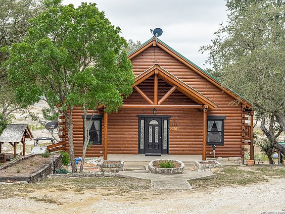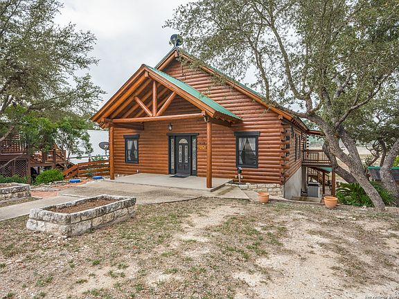 Nestled in the Texas Hill Country on Medina Lake is where you will find this beautiful one of a kind custom log home. With gorgeous lake views from the kitchen, living room and dining room. The home boast a large backyard patio and deck making this a perfect space for entertaining or just relaxing and taking in those beautiful Hill Country views. The lake is just steps away from the back deck with 90+ feet of water front property. This log home also includes its own covered boat dock with a deep water anchor system right outside your back door. Inside you will find a large kitchen with granite counter tops, numerous custom cabinets that provide plenty of storage and stainless steel appliances. The primary bedroom has a large walk in closet and attached bathroom with a shower. The living room has a lovely rock fireplace and also has cathedral ceilings throughout the home. As the water level is ever changing so are the stunning sunsets and sunrises that are breathtaking. This home also has a basement with ample storage for water toys and outdoor equipment. Pebble Beach I & II offer their residence private boat launches and other amenities as well.