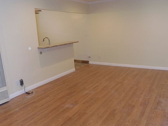 Bottom floor unit. Laminate flooring. Granite counter-tops in kitchen and bathroom. New sinks and faucets. White vinyl dual-glazed windows. Ceiling light fans. Dimmable LED can lights in living room. 2" horizontal faux-wood blinds. Central courtyard with mature grapefruit trees. 1-car garage parking available. Shared coin-op laundry room onsite. Absolutely no pets. Water is paid by the owner. This is a non-smoking property of anything including vape e-cigs. No section 8. Owner pays for water only. All applicants 18 yrs & older must pay $30 cash screening fee. No BK's. No evictions. All other credit line items are subject our analysis.