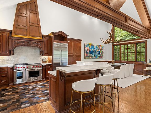 - Exterior features: 1, 200-bottle wine cellar, 3 bedroom suites with ensuite baths, closets, and private balconies, Fitness room, Great room with 18-foot ceilings and natural light, Heating system: Forced Air, Kitchen with Viking appliances, Office/library, Snow-melted driveway, Walkable to downtown Aspen dining, shopping, and nightlife