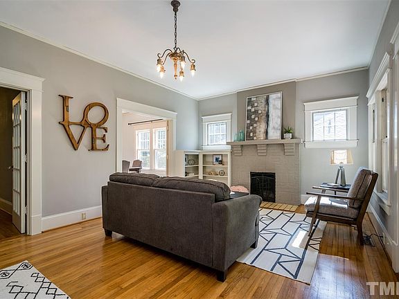 An instant classic in Trinity Park. Tremendous curb appeal, tall ceilings, delightful living spaces + smart floor plan provide flexibility for your lifestyle now. Gorgeous kitchen: custom cabinets + subtle stone. Updated baths. Nicely sized bedrooms offer additional space for living, work + play. Timeless style outside: brick arches, wide porches + a porte cochere. Fabulous backyard + deck ready for fun, detached garage perfect for projects. Plenty of off street parking, Easy stroll to Duke + Downtown.