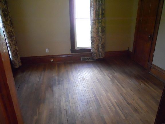 Features $30,000 + updates such as new roof, windows, doors and siding; two new ceiling fans, new furnace and central air; new water heater; hardwood floors; new tub, shower and bathroom floor; kitchen provides new stainless steel sink/cupboard, flooring; walk up attic; storage shed in rear; this home will make a great starter or investment property; desirable lot size with alley access; low taxes; Fenced yard needs some repair; dwelling needs some repair--walls, ceiling and foundation; room dimensions are approximate; nearly new stove and refrigerator stay; selling "as is"