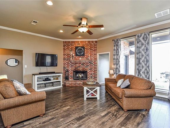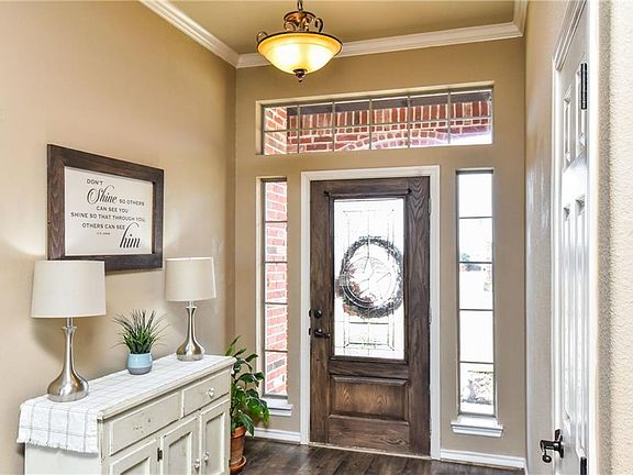 Spectacular Neighborhood Living in this Fabulous Home. Open concept with high ceilings and crown molding. Granite counter tops. Ceiling to floor windows add natural light to living areas. Grand Master bedroom with Tray Ceiling, decorative tile in spacious bathroom shower, duel vanities, separate walk in closets. Master opens to the covered patio. Corner lot provides for additional side driveway parking. Fenced yard. Garage has been converted to an extra room with full bath for guests, man cave, or shop. Can easily be opened for car space and keep the bath. Resident community park includes fountain pond, playground, and tennis court. Minutes to the Lake, HEB, and name brand shopping. Must see!