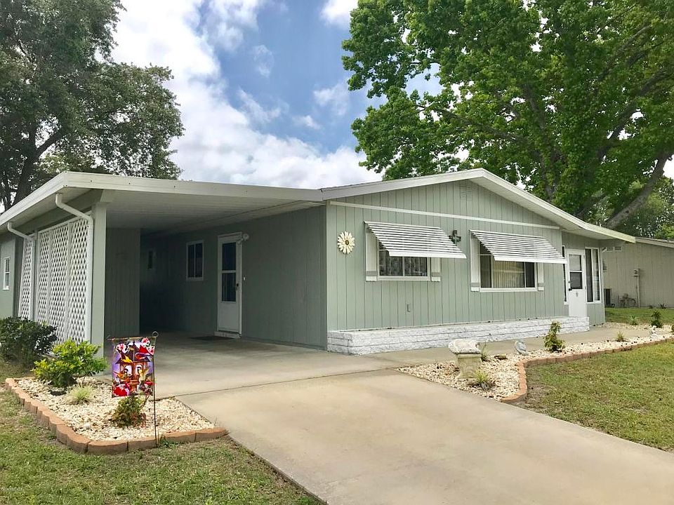 One of the nicest homes you'll find available in Pine Run! 2 Bedrooms, 2 Full Baths, 1-car carport home on extremely well-kept lot w/newer chain link fenced backyard. Laminate floors in great room, nice size bedrooms. Kitchen & baths have been updated with newer cabinetry, granite tops and tiled backsplash in kitchen. HVAC replaced in 2013. Solar tube in kitchen for plenty of natural light. Interior and exterior was repainted in 2016. Both bathrooms have tiled showers w/ glass doors. Owner's bedroom large enough for king-size bed, walk-in closet, and private bathroom. Enclosed Florida room under air. Utility room w/ washer/dryer. Covered open-air patio, beautiful shade tree in backyard. Seller will provide 1 yr home warranty w/acceptable offer. Home furnishings can be purchased separately.