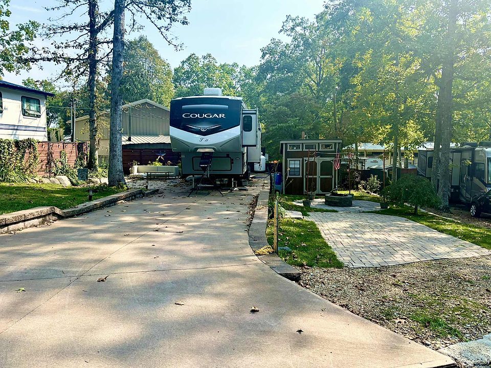Lot 1 - Newly renovated, custom concrete and cobblestone pad with 200-amp service, designed to accommodate your RV lifestyle. Included is a 2022 Keystone Cougar M-368 with Climate Guard, extra insulation for winter comfort, a central vacuum system, and a washer/dryer combo and sleeps 10. The RV is also solar-ready for energy efficiency.