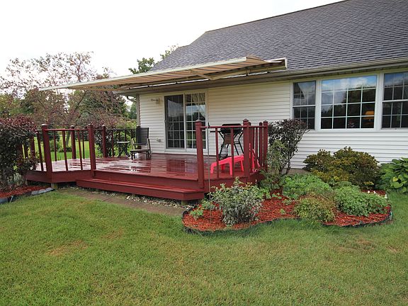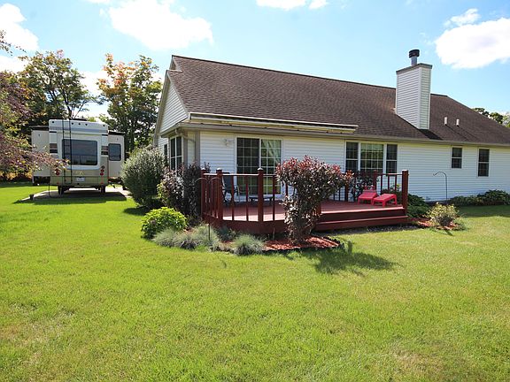 1.4 Acres, Vicksburg Schools! Welcoming front entry with archway & pillars. You'll love the open floor plan with cathedral ceiling ''Great Room'' & corner gas fireplace! Kitchen features a large center island breakfast bar, pantry closet & appliances including 2 year old Whirlpool refrigerator. Sliding glass doors off the dining area lead to the wood deck, great for entertaining! 20' Sunsetter retractable awning for instant shade. Primary suite features a tray ceiling, walk-in closet & private bath with shower & 2-sink vanity. Main floor laundry room, Andersen windows & central air. Open stairway to lower level. Excellent rec room potential in full basement with egress window. Great setup for RV with 20x40 concrete pad and electric. Enjoy this quality home & peaceful country setting today!
