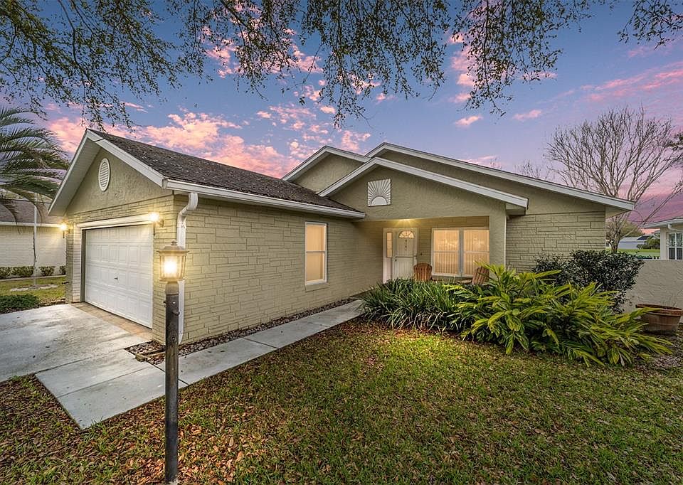 Jefferson located on the beautiful tree lined streets of Williamsburg, overlooking the 13th green! This home has 2 bedrooms, 2 bathrooms, a flex room, and a 2 car garage. 3rd bedroom was converted to an office but can easily be changed back! The large 2nd bedroom has carpet, ceiling fan, blinds, and a closet. The guest bath has a single vanity with stone counter, tub/shower and laundry closet with washer and dryer! Follow through the foyer to the dining room with 2 skylights! The eat-in kitchen features updated stainless steel appliances, wood cabinets, tile backsplash, fan, skylight, and pantry. Master bedroom has carpet, blinds, and ceiling fan. Inside the master bath you will find a double vanity sink with tons of storage, tile, walk-in closet with shelves, linen closet, and an extended walk-in shower. The open living room is great for entertaining! Enter the sunroom through the french doors with tile floors, blinds, and ceiling fan. Relax on your covered porch in your private courtyard overlooking your gorgeous golf course views of the 13th green!