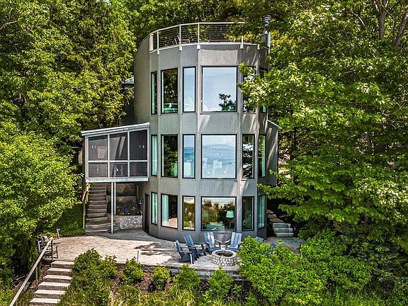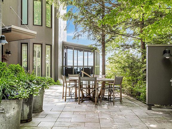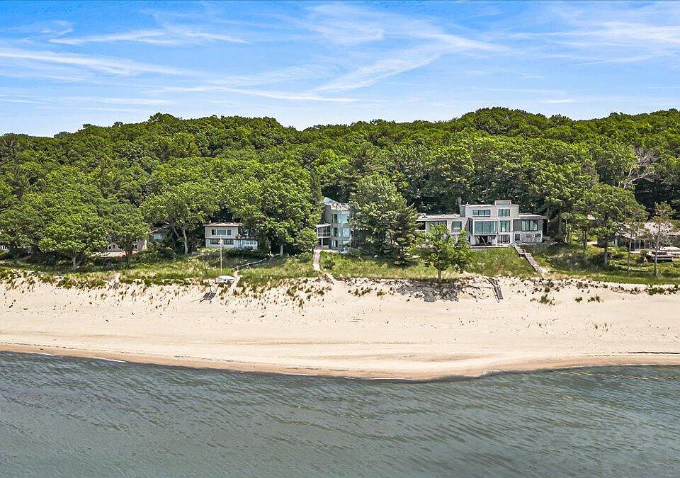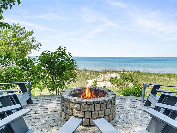 Impeccable Dunewood Beach House. Masterfully designed and constructed new in 2016. Experience the ultimate in lakefront living in this exceptional 5-bedroom, 4.5-bath contemporary luxury home tucked away on peaceful and private Hemlock Lane in Bridgman's Dunewood Community. Enjoy low-bluff access to a spectacular stretch of wide, sandy shoreline that's perfect for long walks into the setting sun. Wake up to breathtaking panoramic views in the luxurious primary suite, complete with a fireplace just steps away from a rooftop terrace for serene morning coffee. Four additional guest rooms on three levels offer privacy and flexibility, including a main-level guest suite, two with treetop views, and a dune level guest quarters with a family gathering room that walks out to an expansive beachside patio with firepit. The open-concept main floor layout is ideal with an entertainer's kitchen designed for effortless indoor-outdoor gatherings, from elegant patio dinners, intimate collaborative meals and casual beachside picnics. Additional amenities include a fitness room, outdoor shower, smart carport, storage room, whole-house generator, and other thoughtfully integrated luxury features.