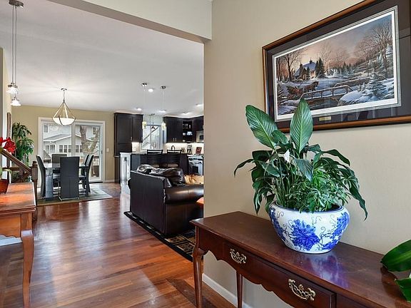 Wonderful 4 level with open great room main floor with high end finishes, three bedrooms up with full and master bath, cozy family room with fireplace and fourth bedroom in lower. Enjoy the over sized deck and low traffic cul-de-sac all in great Maple Grove location.
