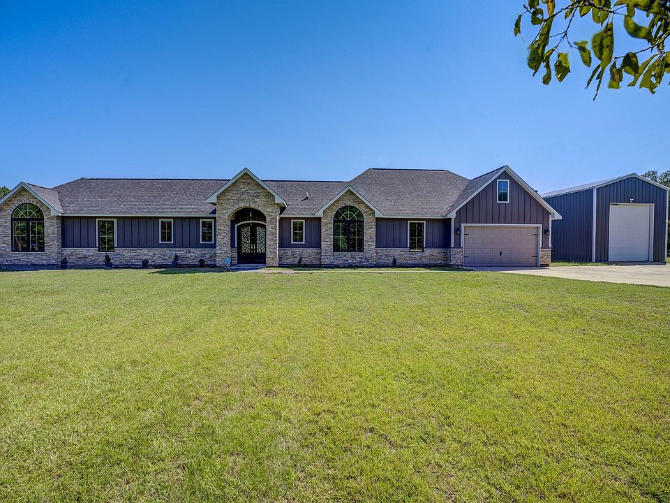 Step into luxury living at 9182 Royal Forest Ln, a stunning single-story brick-veneer home offering 4 bedrooms, 3.5 baths, and exceptional versatility with a den, media room, study, and flex room—all set on a combined 152,460 sq ft with its adjacent parcel at 9154 Royal Forest Ln. The chef’s kitchen boasts granite countertops, a walk-in pantry, pot-filler, breakfast bar, and abundant cabinetry, seamlessly opening to the family room for effortless entertaining. Retreat to the elegant primary suite featuring its own den, fireplace, courtyard access, dual vanities, soaking tub, dual shower, and his-and-hers walk-in closets. Outdoor living shines with a private courtyard, spacious patio, RV-ready garage, and endless space across two lots for recreation or future expansion. Also enjoy neighborhood amenities within a serene, upscale community. Ideally located in Waller with easy access to major highways, this rare dual-parcel property is best for buyers seeking space and sophistication.