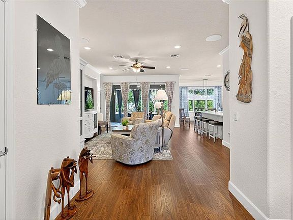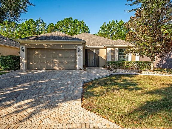 Located in Ocala’s premier gated 55+ active community, this beautifully updated Stetson model offers 2 bedrooms, 2 baths, a den, and a spacious two-car garage. Enhanced with multiple attractive upgrades, this home shines with over $90,000 in recent upgrades, including a **new roof**, **fully remodeled kitchen**, **new appliances**, **updated bathrooms**, **new flooring**, ** additional built in carpentry with butcher block counter in dinning room, **bar door access to primary bath and walk-closet**, **fresh interior and exterior paint**. You’ll love the inviting curb appeal with a paver driveway and walkway, screened front porch, and a covered back porch. Inside, the open floor plan features a formal dining area and a stunning kitchen with stone countertops, tile backsplash, and a convenient closet pantry. The family room boasts triple sliders that fill the space with natural light and open to the screened lanai, seamlessly blending indoor and outdoor living. The primary suite offers comfort and convenience with dual sinks, a walk-in shower, linen closet, and an oversized walk-in closet. This home is also handicap-ready with no thresholds and wheelchair-accessible doorways. Additional smart-home features include app-ready front door access, sprinkler system, and thermostat. This exceptional community offers unmatched amenities such as indoor and outdoor heated pools, saunas, spas, a clubhouse, full-service restaurant and bar, golf, fitness center, multiple sports courts, walking trails, and golf-cart access to nearby shopping, dining and Top of World Square. Ideally located close to medical facilities, shopping, restaurants, and just 7.5 miles from the World Equestrian Center. Move-in ready and designed for comfort, convenience, and an active lifestyle—this home truly has it all!