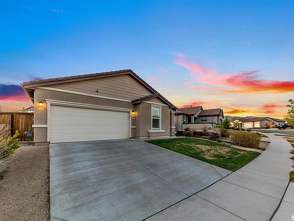 Welcome to your turn-key retreat in Sierra Canyon by Del Webb—a vibrant 55+ active adult community nestled in the heart of Somersett! This beautifully maintained home offers an open, light-filled floor plan that blends functionality with modern comfort. The chef’s kitchen is a true highlight, featuring a generous island, sleek solid-surface countertops, convenient rollout shelves, pendant lighting, and a walk-in pantry—perfect for both everyday meals and entertaining guests., The great room flows effortlessly to a serene, private paver patio with a covered area and a low-maintenance yard, ideal for enjoying sunny Nevada afternoons or peaceful evenings. The spacious primary suite offers a relaxing sanctuary with a large walk-in closet and a well-appointed ensuite bath. A versatile second bedroom doubles as an office or guest space. Thoughtfully upgraded, this home includes an EV charger-ready garage with a 1450 outlet and dedicated 50 amp circuit, as well as Ring security cameras already powered and installed for peace of mind. As a resident, you'll enjoy world-class amenities, including a sprawling 18,000+ sq. ft. clubhouse with an indoor pool, walking track, state-of-the-art gym, outdoor tennis and pickleball courts, and scenic walking trails. This is not just a home—it’s a lifestyle.
