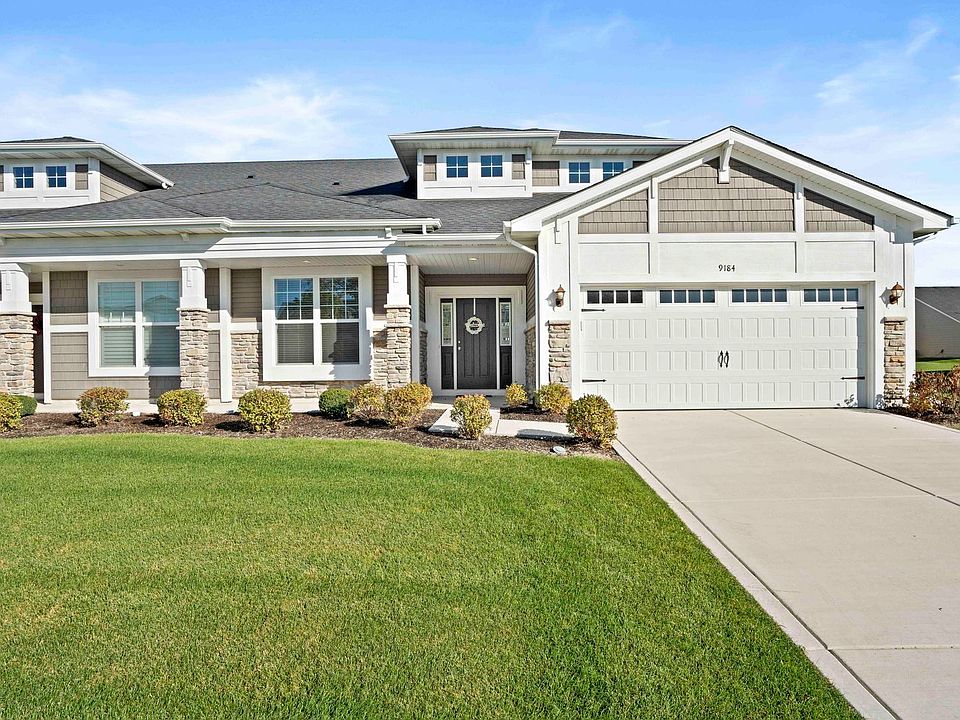 Welcome to this beautifully maintained 2-bedroom plus office, 2-bath ranch townhome in the desirable Mill Creek subdivision. Featuring an open-concept layout with 9-foot ceilings, this home offers hand-scraped hardwood floors, a cozy gas fireplace, and a spacious eat-in kitchen with 42-inch maple cabinets, granite countertops, and stainless steel appliances. The versatile office provides the perfect space for working from home or can easily be adapted for a hobby room or additional guest space. The primary bedroom includes an en-suite bath with a walk-in shower and a generous walk-in closet. A finished laundry room, attached 2-car garage, and a patio off the dinette complete this move-in-ready, maintenance-free home.