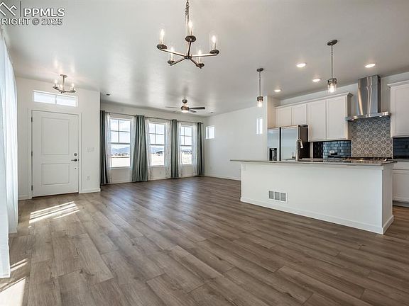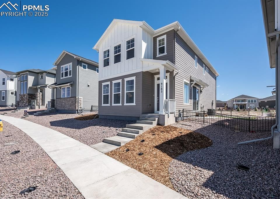 Views, Views, Views! The only Calista Model currently available. Includes Refrigerator, W/D, Drapes, and Blinds. Wake up to stunning, unobstructed views of Pikes Peak and the Front Range from your primary suite, walk-in closet, and main living spaces. This beautifully maintained 3-bedroom, 3-bathroom, 2-car garage home in the sought-after Wolf Ranch community combines modern style, thoughtful upgrades, and truly exceptional scenery. Inside, you’ll love the open-concept design featuring a bright, airy layout and a stylish kitchen with quartz countertops and an island, tile backsplash, stainless steel appliances, ample cabinetry, and pantry. The primary suite is a private retreat, complete with a spacious bedroom, walk-in closet with mountain views, and a spa-style bathroom with dual quartz vanity and a walk-in shower with double showerheads and a bench for comfort. Additional Features: • Unmatched mountain and sunset views • Energy-efficient tankless water heater • Central A/C • Washer, dryer, and refrigerator included with sale • Custom window treatments throughout • Attached 2-car garage + additional street parking • Low-maintenance landscaping – professionally maintained and paid for by the HOA Outside, enjoy the best of Colorado living with access to Wolf Ranch’s top-tier amenities—including scenic walking and biking trails, parks, picnic areas, community events, and even seasonal fishing and kayaking at Wolf Lake. You’ll also enjoy access to the Wolf Ranch Recreation Center and pool, all located within the award-winning D-20 school district. Just minutes from major hospitals, great shopping, dining, and Powers Blvd for easy commuting—this home truly offers something for everyone. This home checks all the boxes. Schedule your private showing today! The Calista Model is the largest home in the Revel Crossing development.