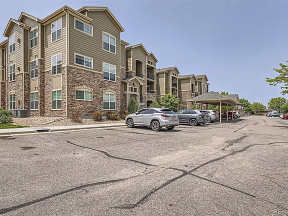 This charming 1,254 sq ft home features 3 bedrooms and 2 bathrooms. This stunning property boasts a modern floor plan, highlighted by a center kitchen island that seamlessly connects to the dining area and living room. The living and dining spaces offer a cozy gas fireplace, access to a private balcony, and two oversized windows that flood the area with natural light. The contemporary kitchen provides ample storage and updated stainless steel appliances, making it a delightful space for cooking. The primary suite is a true retreat, complete with a spacious walk-in closet and an attached bathroom featuring dual sinks and a stylish stand-alone shower. The additional bedrooms share a full bath equipped with a relaxing bath/shower combo. Convenience is key, as this unit includes a washer and dryer, along with access to desirable community amenities such as a sparkling pool, hot tub spa, and a fully equipped fitness center. Ample parking is available, including a deeded carport and open parking lot. This community has easy access to downtown Parker, DTC and the freeway.