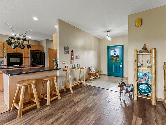 Welcome to 9187 Apple Road—a beautifully maintained rural residential property designed for comfort, functionality, and country living. Nestled on 10 acres of level land with medium tree coverage and 6.5 acres of fenced pasture, this turn-key hobby farm is ideal for horse lovers, hobby farmers, or anyone seeking a peaceful retreat. It is a beautiful set up horses with livestock fencing and 2 box stalls in a 42x70 pole building with 100 amp service. House roof was replaced in 2020, new windows were installed 2024, forced air furnace and water softener 2025, gutters added in 2023, patio and sidewalk poured in 2022 and deck added in 2023. Pole barn garage doors are 10x12 and 14x12 and livestock door in rear. With this home you will fill like a chef in the kitchen which is beautifully set up for entertaining people. Three bedrooms on the main level with private Master suite with walk-in closet and shower make this a must see.