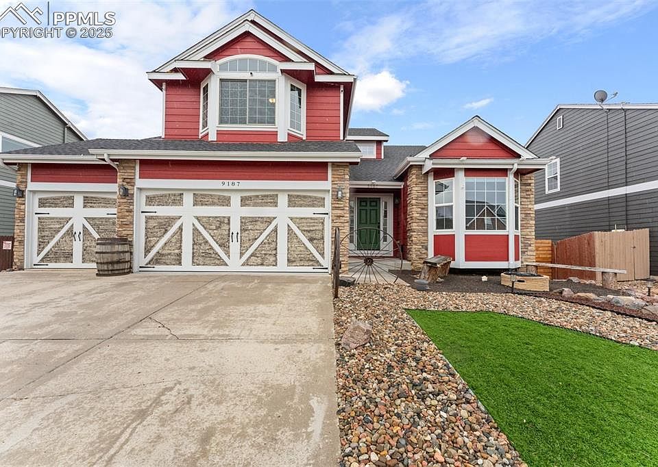 **This beautiful home just got even sweeter** Welcome to your dream home in the highly sought-after Woodmen Hills community. This beautifully updated 5-bedroom, 4-bathroom residence perfectly blends modern farmhouse charm with thoughtful upgrades throughout. Step inside to soaring vaulted ceilings and abundant natural light that fills the main level, creating a warm and inviting atmosphere. The spacious kitchen boasts upgraded appliances, ample counter space, stylish finishes, and opens directly onto a brand-new deck—ideal for summer cookouts and entertaining. A cozy gas fireplace anchors the living area, while the dedicated office—with new carpet and fresh paint—offers the perfect work-from-home setup. Upstairs, the expansive primary suite features vaulted ceilings, mountain views, and a spa-like en-suite bath with soaking tub, creating your own private retreat. Two additional bedrooms share a convenient Jack & Jill bath, while a fourth bedroom includes its own private full bath. The fully finished walk-out basement adds even more living space, complete with a wet bar, home theater, second gas fireplace, and oversized versatile areas for guests, hobbies, or recreation. Outside, the backyard is ready to be transformed into your personal outdoor oasis—perfect for gatherings or quiet evenings under the stars. Situated near parks, trails, schools, Antler Creek Golf Course, and two community recreation centers with extensive amenities, this Woodmen Hills gem truly has it all!