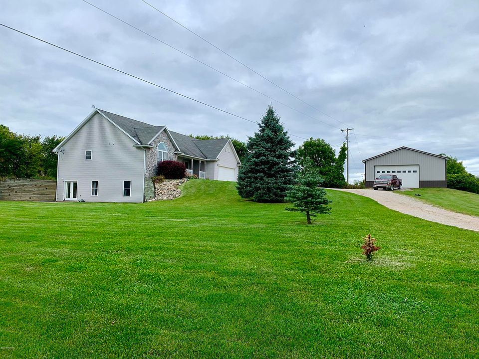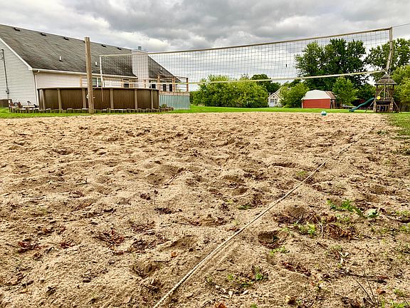 Incredible property for entertaining friends and family. This 2882 sq foot home has 5 bedrooms and 3.5 baths an insulated 2 car attached heated garage. This is the ''house on the hill'' with a custom outdoor beach volleyball court, above ground swimming pool with a large deck. Backyard also has a very well done fire pit. The 33x40 pole barn has cement floor with 220 electric. The home is very efficient with an outdoor wood burner. This walkout home has a huge entertainment room in the lower level with two huge storage areas. The kitchen is well designed and has beautiful granite countertops.