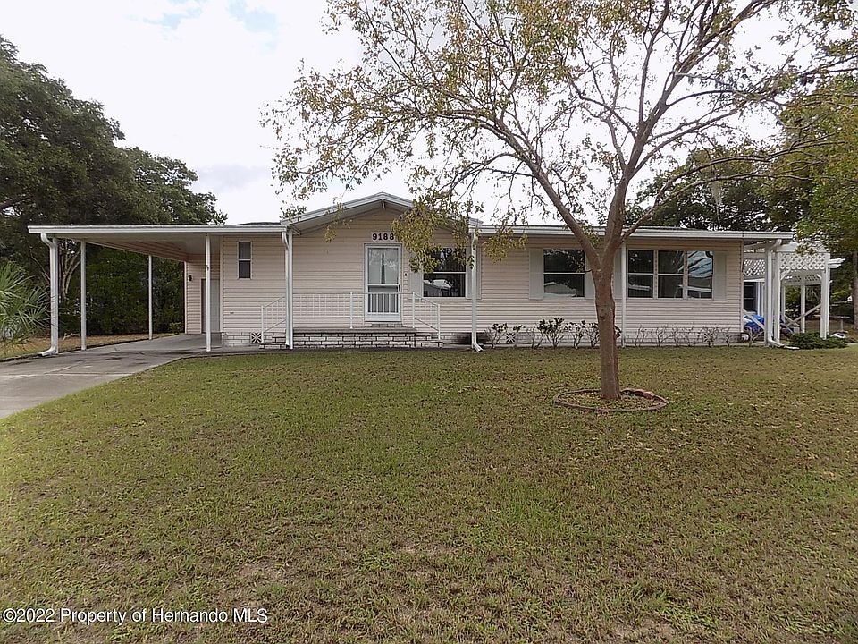 Excellent opportunity to live the Florida life in the 55+ gated, golf course community of Brookridge! This home has so much to offer including an oversized lot, 2 carports, a golf cart garage, and multiple enclosed porches. The interior features a living room, separate dining room, open kitchen and 2 spacious bedrooms including a primary ensuite with an attached bathroom. The large kitchen has a nice sized prep island, wood cabinets, and plenty of counter top space. Low HOA fees, 24hr guard and gated access, community pool, and much more! Call today. SELLER DOES NOT OBTAIN MOBILE HOME TITLE. BUYER MUST OBTAIN AFTER CLOSING AND IS RESPONSIBLE TO CURE MOBILE HOME TITLE (RETIRE TITLE) AFTER CLOSING AND WILL HAVE TO SIGN HOLD HARMLESS.