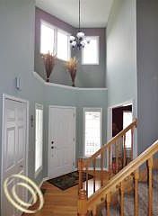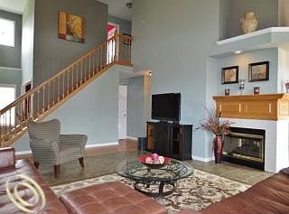 Outstanding, pristine home on Lg. wooded lot. 2 story entrance & family room. Updates in kitchen include granite counters and travertine backsplash. New carpet throughout including basement. Wood floors and permastone tile flooring on main level. Amazing main floor master w/trayed ceiling bath w/jetted tub. Paved patio and fire pit in back. Professional landscaping.Remote awning over large deck w/post lights over looking gorgeous