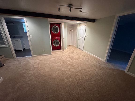 Basement has brand new carpet, works well as a master bedroom or home theater.