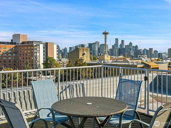 Alfresco dinners, morning coffee under your dogwood and fruit trees on your own, private, 12'x12' garden patio—space to plant and play awaits! This uncommon outdoor haven is part of Hadley House, a beloved Queen Anne co-op just one block from Kerry Park and close to Uptown dining, the QA farmers market, Seattle Center & Climate Pledge Arena. Inside, enjoy hardwood floors, French doors, and custom drapes. The updated rooftop deck stuns with panoramic views of the Sound, city & mountains. Low HODs include water/sewer/garbage, property taxes, storage, bike room, laundry room, lounge, library & kitchen. Building parking by waitlist. No excise tax when you sell! Peaceful spot tucked between upper & lower QA. Live urban with soul—for under $300K!
