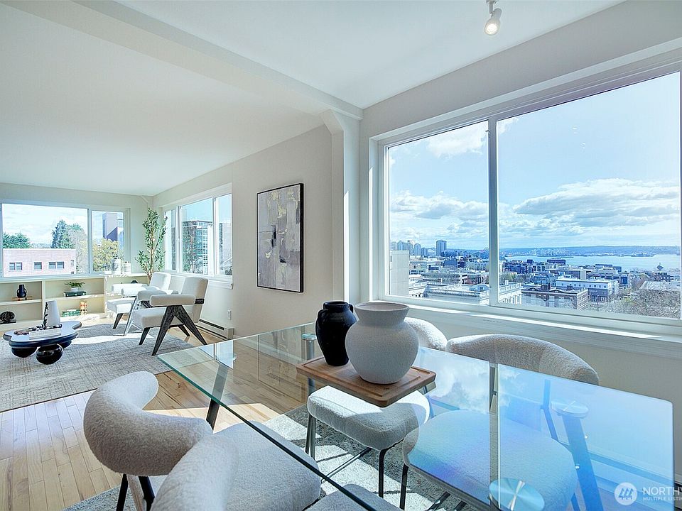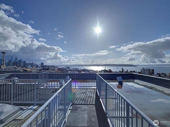 Possibly the best panoramic view residence in all downtown Seattle and north Seattle neighborhoods. A better panoramic view than most downtown condos between $1,000,000 and $2,000,000. View extends from the Space Needle, city skyscrapers, both stadiums, Elliot Bay w/ferry shots, all the way to Alki Point & beyond! In addition to that, it is just up the hill on the south slope of Queen Anne, so quiet compared to Seattle center, yet walkable. Yes, it's been on the market for 6 months. The main reason is this 2 bedroom home does does not have a Washer/Dryer in the home (community W/D on floor 1) & the current board will not allow. Board does a great job running this solid building. Parking & pets should be OK, per board. Staging removed.