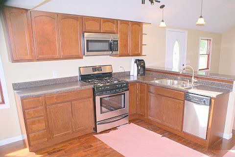 Available July 1st., 2019. Beautiful cathedral ceiling with skylights in living room and kitchen, Large breakfast bar and open floor plan. One-car attached garage plus off-street and street parking. Nice back yard. Cherry floors in kitchen and living room, ceramic tile in bath. Appliances Included: dishwasher, garbage disposal, microwave, gas oven, gas stove, washer/dryer. We have a professional cleaning company do a deep cleaning before tenant moves in. Please do not disturb current tenants. Expect at least a 24-hour wait for appointments. Base security deposit is $950.00. Pet types: cats, dogs, fish / birds, reptiles, hamsters. For each fish tank a refundable deposit of $500 is required. For each pet not permanently kept in a container like a bird cage, aquarium, etc., a deposit of $500 is required. All dogs and cats must be spayed or neutered. You may have no more than three cats, no more than two dogs, and no large pet at or greater than 35 lbs. Since there is a $1000 pet deposit cap, this means that for three pets, that last pet will have no additional deposit. Pet rent is $10 each. Manager must meet and approve of pets. We run a thorough eviction check, criminal check and credit check, and perform landlord and employment interviews. Credit score must be at least 600. Note that you can get your FICO Score 8 for free at Tenant pays all utilities, does all mowing, snow removal, furnace filter replacement. See description for more details.