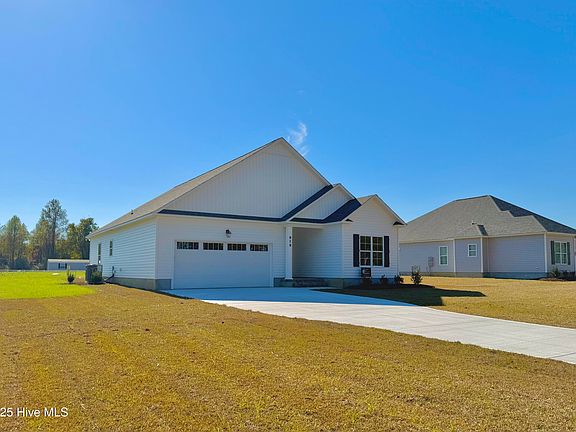 Luxury vinyl plank flooring adds warmth and durability throughout, complemented by carpeted bedrooms for added comfort. This energy-efficient home features an electric heat pump and central air, ensuring year-around comfort. A covered back porch is perfect for grilling or outdoor relaxation. Additional features include a 2 - car attached garage, private concrete driveway, Owens Corning Duration 30-year shingles, and maintenance-free vinyl siding with accents and vinyl post sleeves for porch columns. Located in the South Lenoir school district, this residence offers easy access to New Bern, Jacksonville, and Goldsboro.