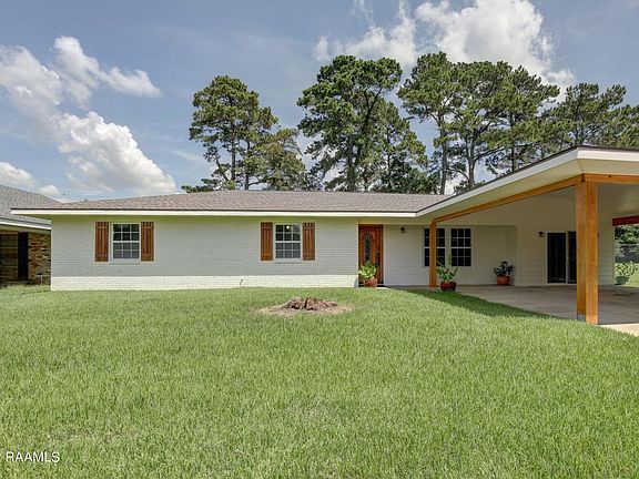 Total renovation! This lovely brick, three bedroom, two bathroom home includes a bonus room, a covered back patio, an outside multi purpose building and storage. This home has a new roof, new a/c heat unit, new paint, and much more! It features a raised ceiling in the living area which opens up into the kitchen with oodles of cabinets. There is a beautiful stained glass window in the living area. The baths are also updated. The backyard is fenced. Carport has a raised ceiling with cypress beams. This property is move in ready and located on a quiet street in Park Vista subdivision south of town, near shopping and has easy access to I 49.