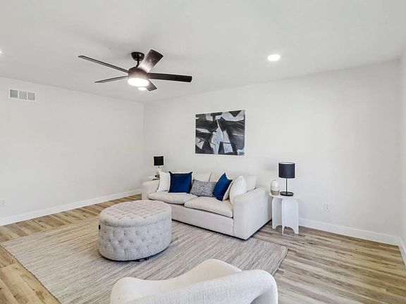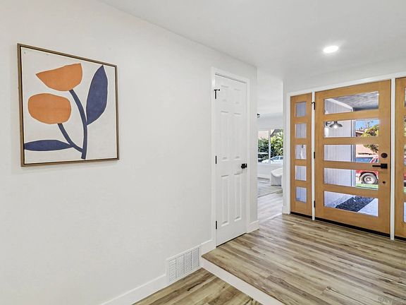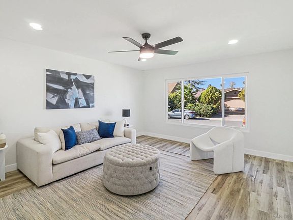 Welcome to this beautifully remodeled 3-bedroom, 2-bath home, ideally located on a quiet cul-de-sac. With a spacious 2-car attached garage, this home offers both style and functionality. The updated kitchen features sleek stainless steel appliances and a convenient pass-through window bar, perfect for seamless indoor-outdoor entertaining. Sliding glass doors lead to a large, fully fenced backyard with brand new grass and an efficient irrigation system, providing a peaceful retreat for relaxation or outdoor activities. Enjoy the convenience of being close to shopping, restaurants, and entertainment, all while being just minutes away from the best that San Diego has to offer. This home combines comfort, modern updates, and an ideal location—don’t miss the chance to make it yours!