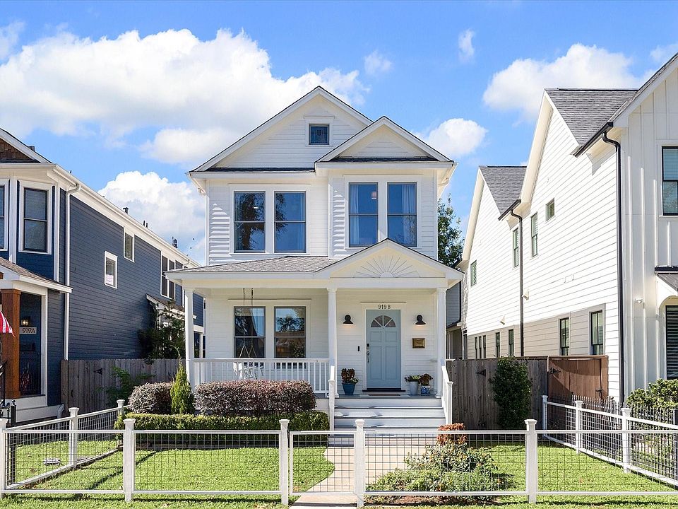 Gorgeous Heights home featuring timeless updates and modern style. This Ashland gem welcomes you with a spacious formal living area overlooking the charming front porch. The open kitchen boasts marble countertops, stainless steel appliances, a gas cooktop, custom drapery, and abundant storage. An inviting den and dining area flow seamlessly to the large side deck—ideal for al fresco dining. A convenient powder bath is located on the first floor. The fully turfed backyard is perfect for play and entertaining. Upstairs, the stunning primary suite includes built-ins, an updated en suite bath, and a generous walk-in closet. Two additional bedrooms share a stylish Jack-and-Jill bath. Hardwood floors throughout the main living spaces, a detached 2-car garage, and an ideal location near top Heights restaurants, shops, trails, and nightlife. All info per seller.