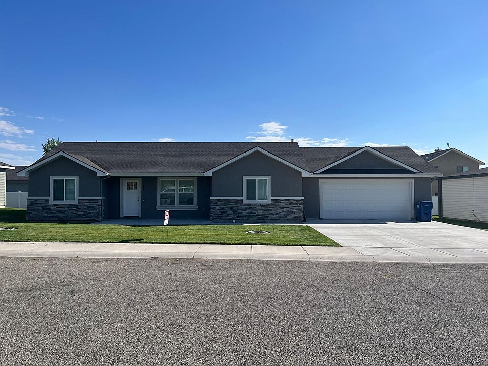 WONDERUL CURB APPEAL! Move in ready, 3 bedroom 2 bath quality built home with lots of extra touches you'll notice right away. Stone and stucco front with 9x20 concrete front porch. Owners suite offers spacious room w/full tiled shower and dual vanities. LVP flooring, breakfast bar, oversized laundry room w/coat closet and extra storage. Full automatic sprinklers front and back. All kitchen cabinets, drawers and barn door are soft close. Oversized finished ,insulated & painted garage interior with storage. Gas water heater. Great location close to schools, parks and walking path.