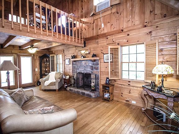 YOUR DAILY ESCAPE or VACATION HOME located about a mile off the Blue Ridge Pkwy. This cozy log cabin is nestled in a gated community loaded with amenities including a pool, waterfall, tennis courts, playground, and lagoon. Dual decks on the back of the home sport a view of the valley, Pilot Mountain, and Hanging Rock. Dine Out on the lower deck and relax in the porch swing on the lower covered deck. Inside you can enjoy this same view from all the living areas. The hardwood floors throughout the main and 2nd levels add extra warmth. Kitchen upgrades include new custom cabinetry with special features including spice cabinets & vegetable drawer plus granite counter tops, an island, and stainless steel appliances. The open floor plan allows interaction with friends & family. The stone fireplace will keep the cabin toasty warm on chilly nights. Curl up in the intimate 2nd level loft with a good book or watch a favorite movie before heading off to the master bedroom to drift off to sleep