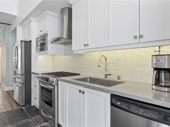 Discover the perfect blend of comfort and function in this open concept loft designed for today’s lifestyle. The live|work Santiago Loft offers an amazing living space and the opportunity for business space too! Nestled in the heart of Santa Ana’s thriving arts and culinary scene, dining & shopping, near the 5, the 55 & the 22 Freeway, this exceptional property offers unmatched potential for both. The first floor offers a half bathroom and enough office space for 4 to 6 desks. Use this first floor space as a workshop or gallery, a gym, a pop up store front, a bedroom, an office, a crafting room or a lounge area - there are so many uses for this space! When the roll up door is open, the space is nice and cool and comfortable to work in. Pilates or yoga sessions would be amazing in this space - lots of potential for any type of usage. The side by side 2 car garage offers upper storage racks and direct access to the loft. On the 2nd floor, you find the beautiful open concept kitchen with Cambria countertops which offer a lifetime warranty! Check out the gorgeous kitchen island! The soaring ceiling opens to the 3rd floor and is really dramatic and sure to wow all your guests. The living room/sitting area/alternate bedroom area/full bathroom are also on the 2nd floor. The master bedroom has an open concept and lofty feel to it and is on the 3rd floor complete with walk-in closet and ensuite bathroom. Interior laundry closet is located on the 3rd floor. You are going to love this live|work loft in the Santiago Lofts community!