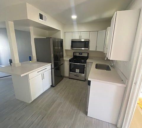 Completely remodeled a couple years ago, all wood tile floors, shaker cabinets, white quartz countertops, your own covered parking space comes with washer and dishwasher gas range microwave refrigerator all stainless steel ,bathrooms, redone, with white tile and Stone floor, new plumbing and walls and fixtures brushed nickel Glass Shower Doors And master large shower in hall bathroom master bedroom with s walk-in closet energy efficient dual pane windows updated insulation the attic, newer AC unit right in the middle of the central corner landlord is looking for a two year lease great location near everything. Very quiet complex no attached walls to this unit. Huge unit almost 950 sq ft. It's almost like your own little house. Unit has its own carport and is freestanding from other properties on the complex single level no stairs nice screened in patio off of Arcadia door.