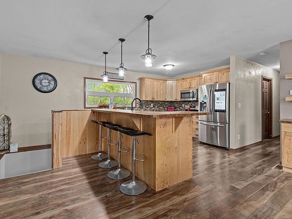 Step into comfort and style with this freshly updated ranch home! Set on the edge of town, you’ll enjoy peaceful views and visits from birds, deer, and other wildlife. Inside are 3 spacious bedrooms and 3 full baths, including a luxurious primary suite with a massive walk-in shower and soaking tub. The finished basement adds extra space to relax or entertain, while custom cabinetry brings a high-end touch to the kitchen and baths. Outside, a large yard offers room to add an extra garage, and the new roof, gutters, and siding provide lasting peace of mind. The attached 2.5-car garage completes this move-in ready home made to impress. Washer, dryer, and patio set are negotiable.